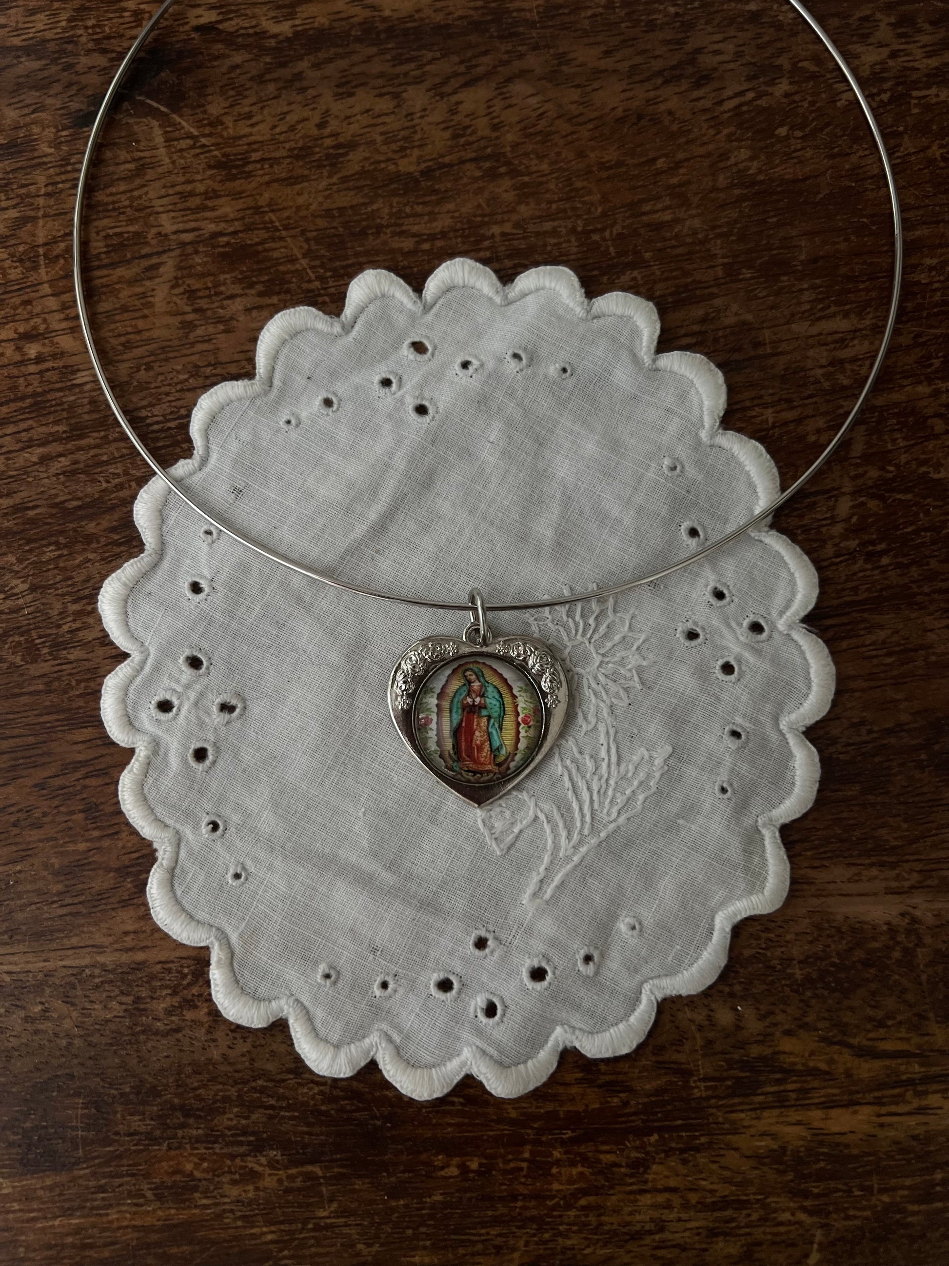 Stainless steel choker, a heart pendant with the Virgin Mary.