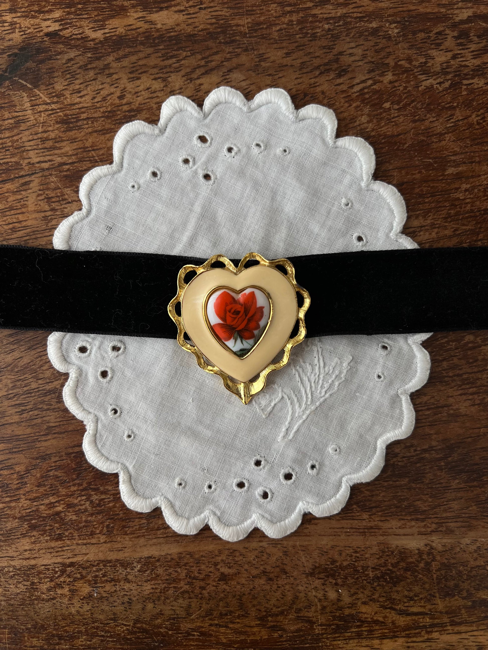 Black velvet ribbon with vintage brooch pendant.