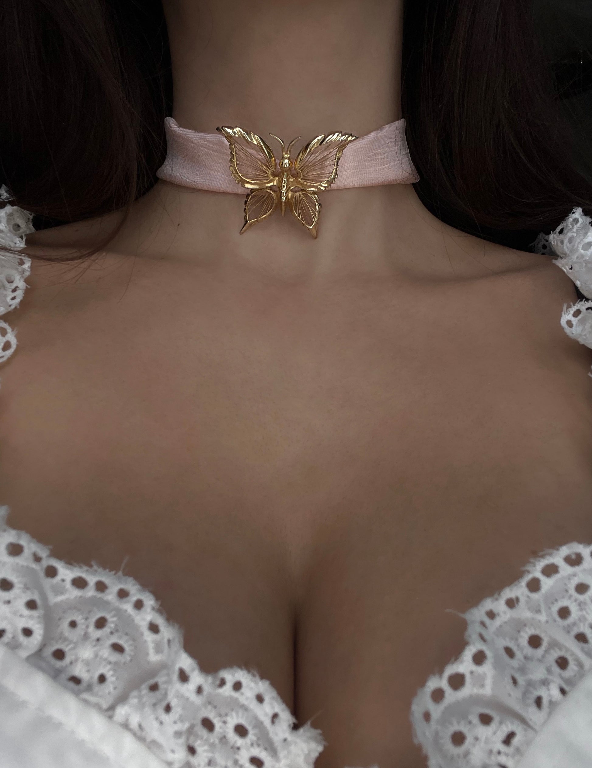 Light pink silk ribbon with a cute vintage butterfly (Monet, 1940s).